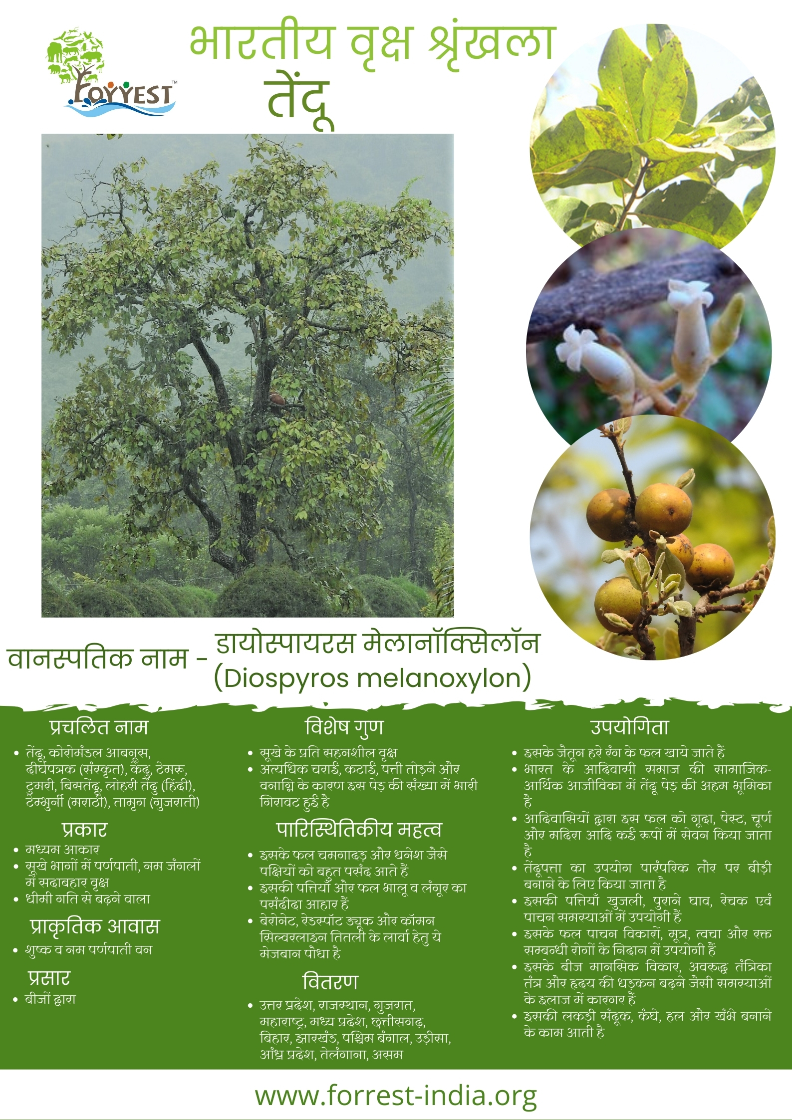 Common Name – Dirghapatraka (Sanskrit), Tendu, Temru, Tumri, Timburni, Bistendu, Lohari (Hindi), Timburni (Marathi), Tamrug (Gujrati)