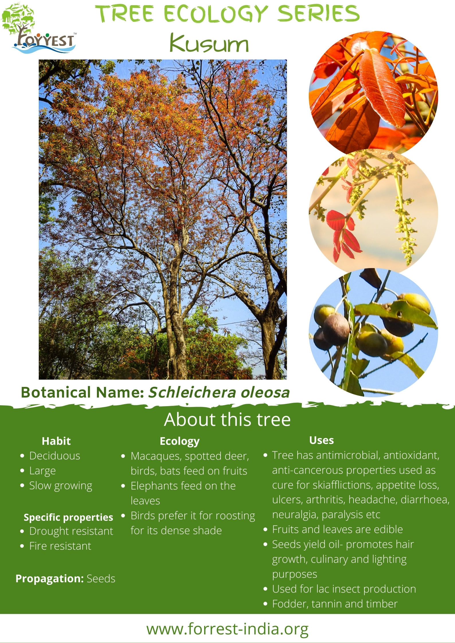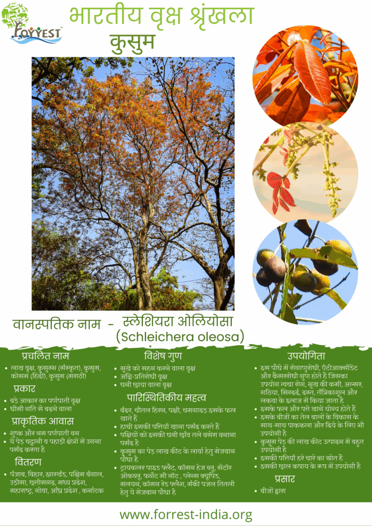 Common Name – Lac tree, Kusumbha (Sanskrit), Kusum, Kosam (Hindi), Kusum (Marathi), Chakota (Kannada)