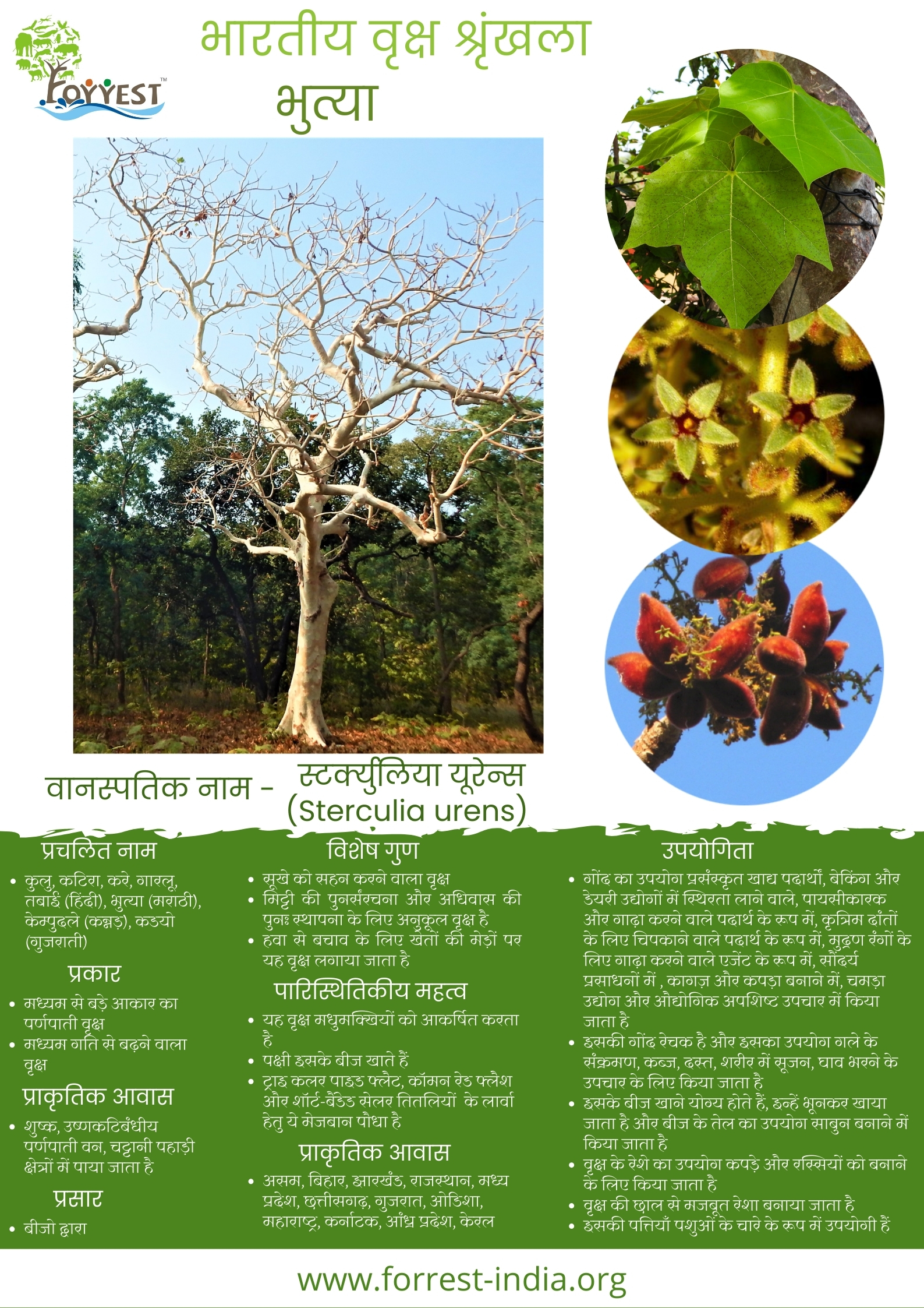 Common Name – Ghost tree, Gum Karaya, Kulu, Katira, Karay, Garlu, Tabai (Hindi), Bhutya (Marathi), Kempudale (Kannada), Kadaya (Marathi)